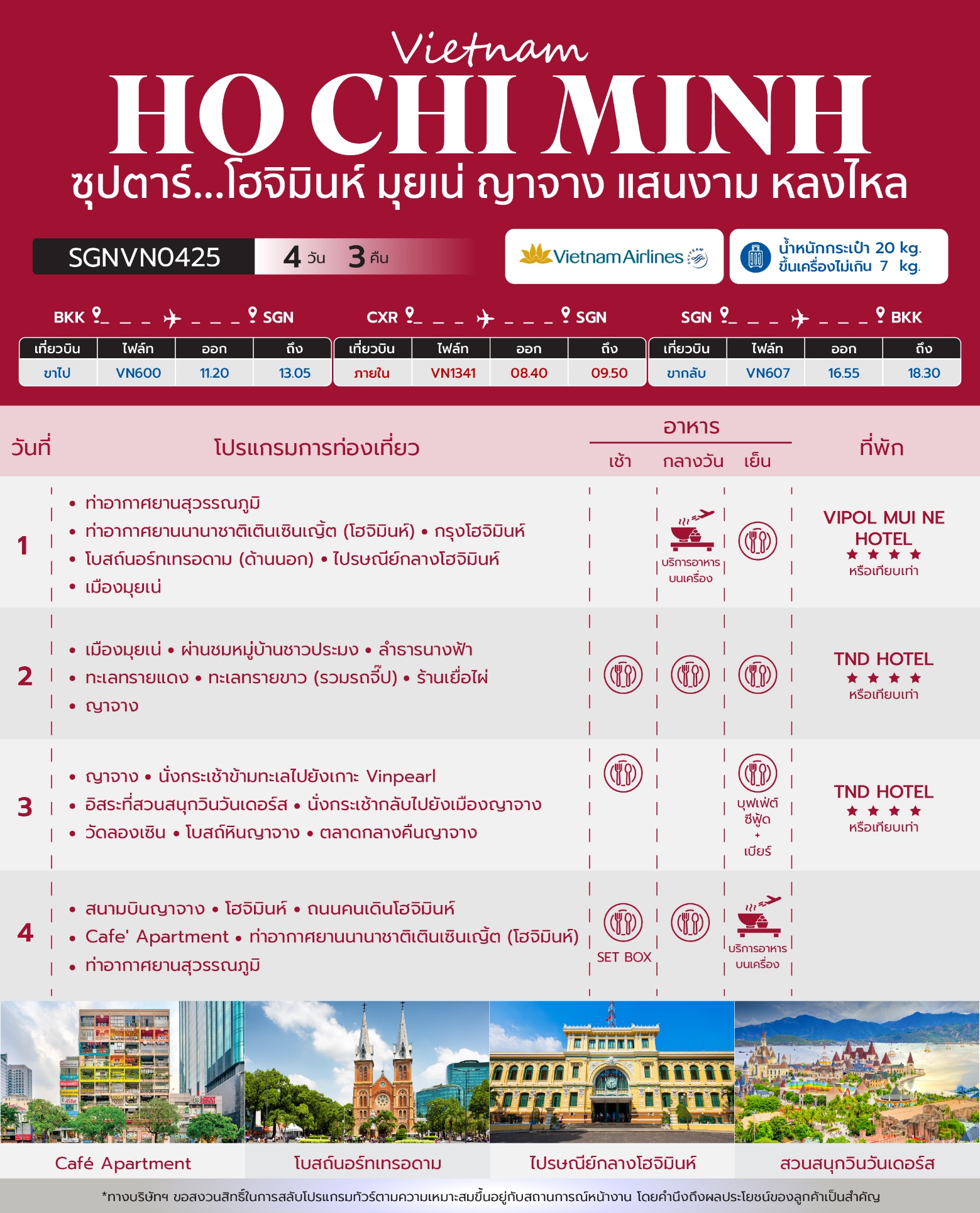 ซุปตาร์...โฮจิมินห์ มุยเน่ ญาจาง แสนงาม หลงไหล 4 วัน 3 คืน (NOV 25 - MAR 26) บินเที่ยง-กลับเย็น