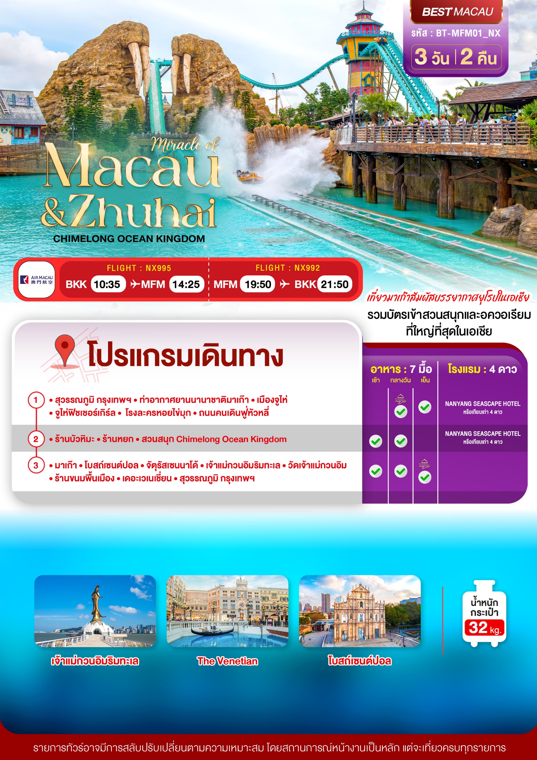ทัวร์มาเก๊า จูไห่ สวนสนุก CHIMELONG OCEAN KINGDOM 3 วัน 2 คืน บินNX เดินทาง ต.ค.-ธ.ค.68 ปีใหม่69 ราคาเริ่ม 15,999.- บาท