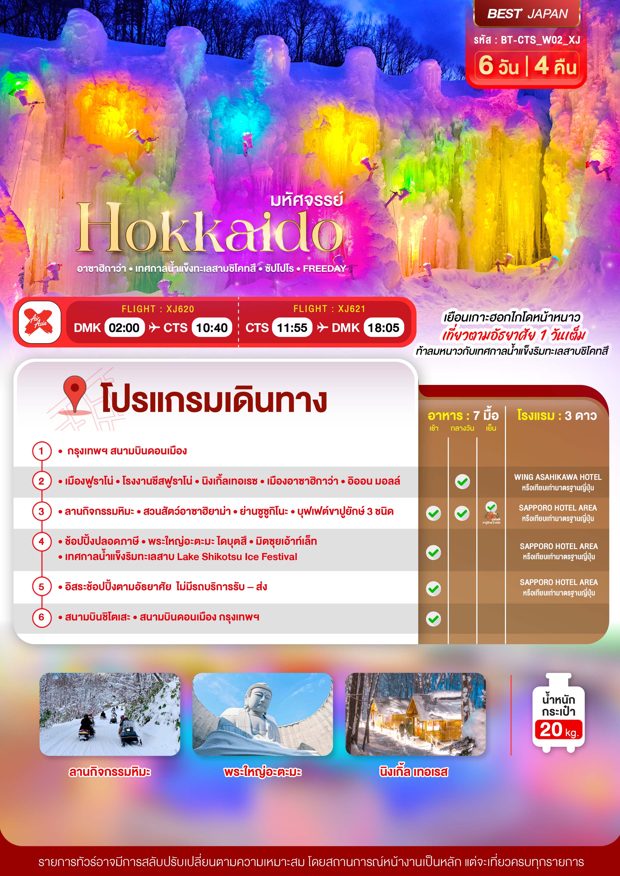 HOKKAIDO อาซาฮิกาว่า เทศกาลน้ำแข็งทะเลสาบชิโคทสึ ซัปโปโร FREEDAY 6 วัน 4 คืน