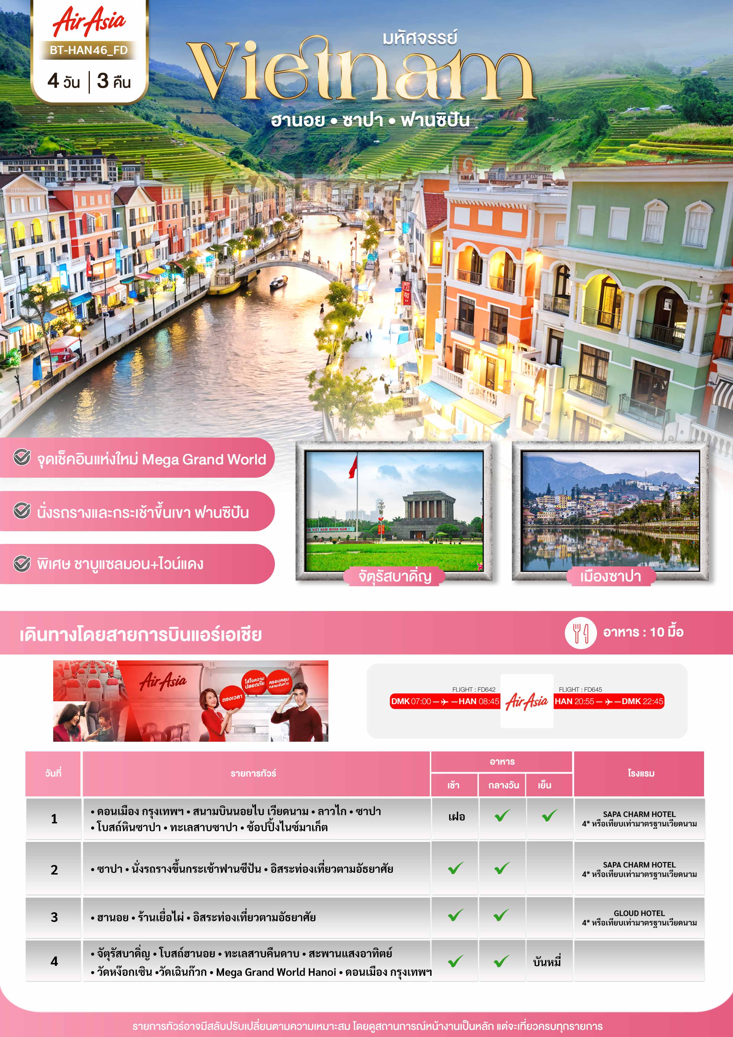 ทัวร์เวียดนามเหนือ ฮานอย ซาปา ฟานซิปัน Mega Grang World 4 วัน 3 คืน บินFD เดินทาง ธ.ค.68-มี.ค.69 ราคาเริ่ม 15,999 บาท