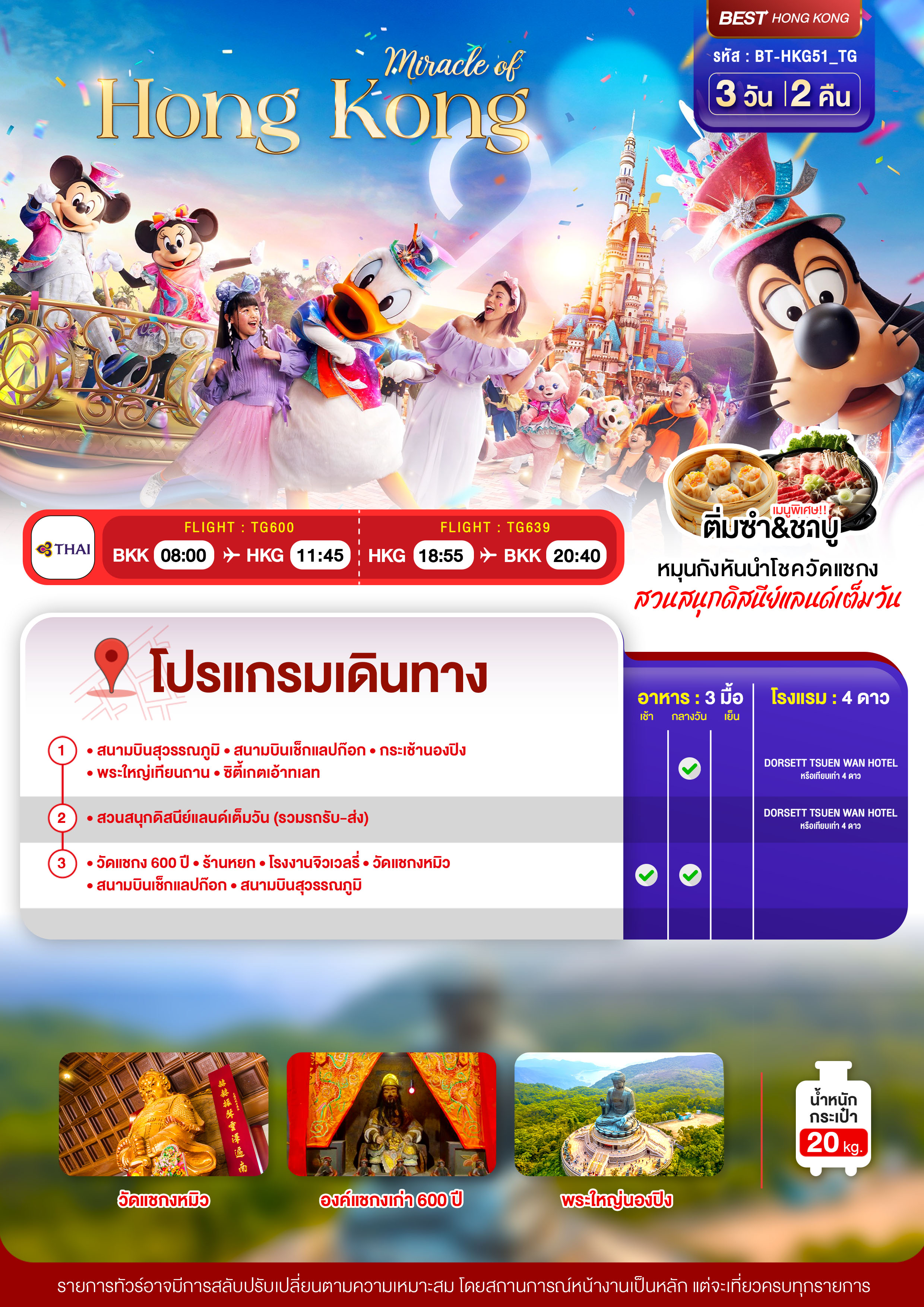 ทัวร์ฮ่องกง นองปิง ดิสนีย์แลนด์ 3 วัน 2 คืน บินTG เดินทาง ต.ค. 69 ราคาเริ่ม 25,999 บาท