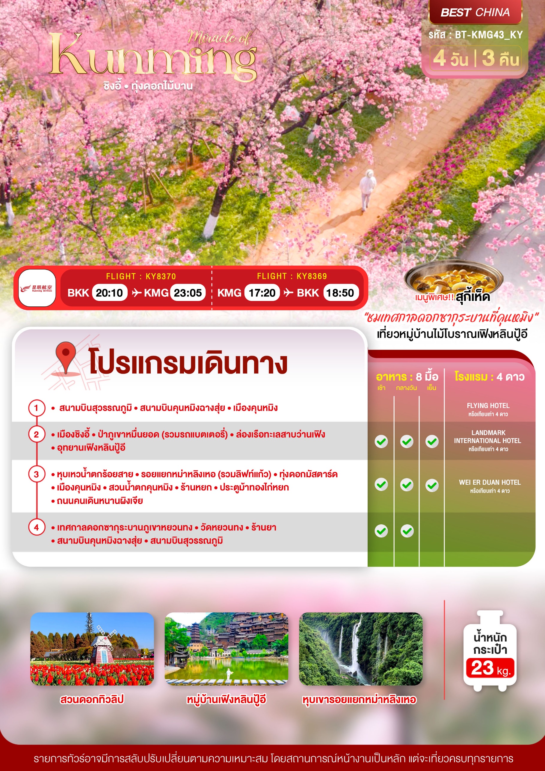 ทัวร์คุนหมิง ชิงอี้ ชมซากุระบาน 4 วัน 3 คืน บินKY เดินทาง ก.พ. มี.ค. 69 ราคาเริ่ม 14,999 บาท