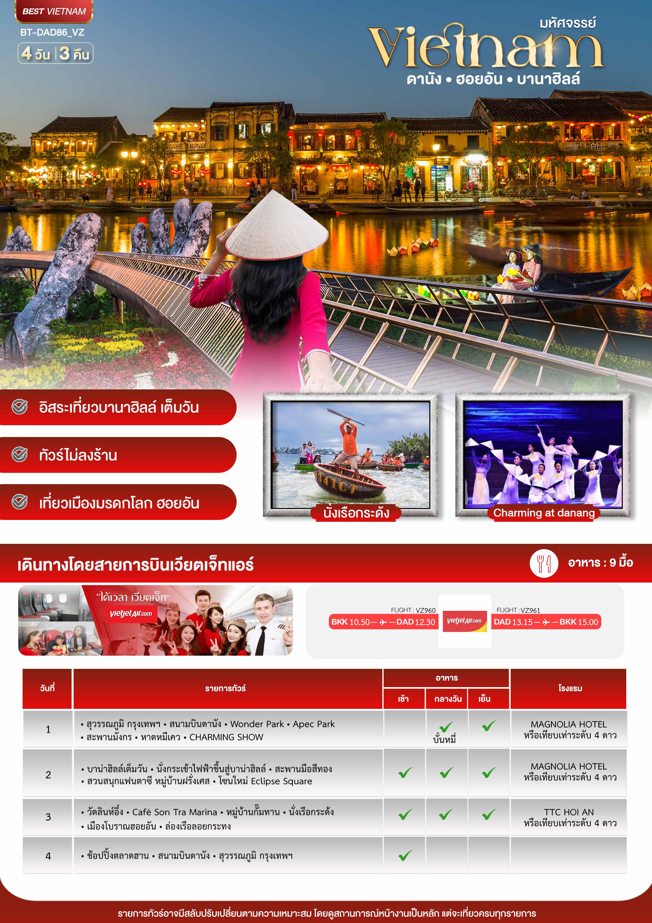 ทัวร์เวียดนามกลาง ดานัง ฮอยอัน เที่ยวบานาฮิลล์เต็มวัน (ไม่ลงร้านช้อป) 4 วัน 3 คืน VZ เดินทาง ธ.ค.68-มี.ค.69 ราคาเริ่ม 12,999 บาท