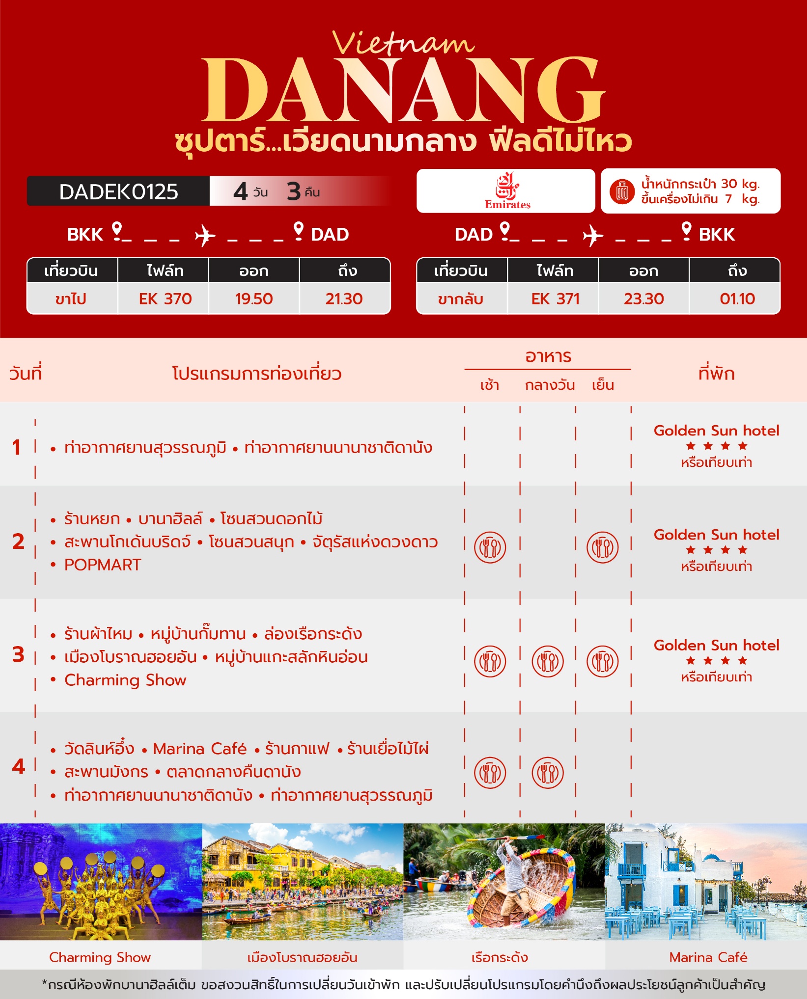 ซุปตาร์...เวียดนามกลาง ฟีลดีไม่ไหว 4 วัน 3 คืน (JAN-MAY 26) บินค่ำ-กลับดึก