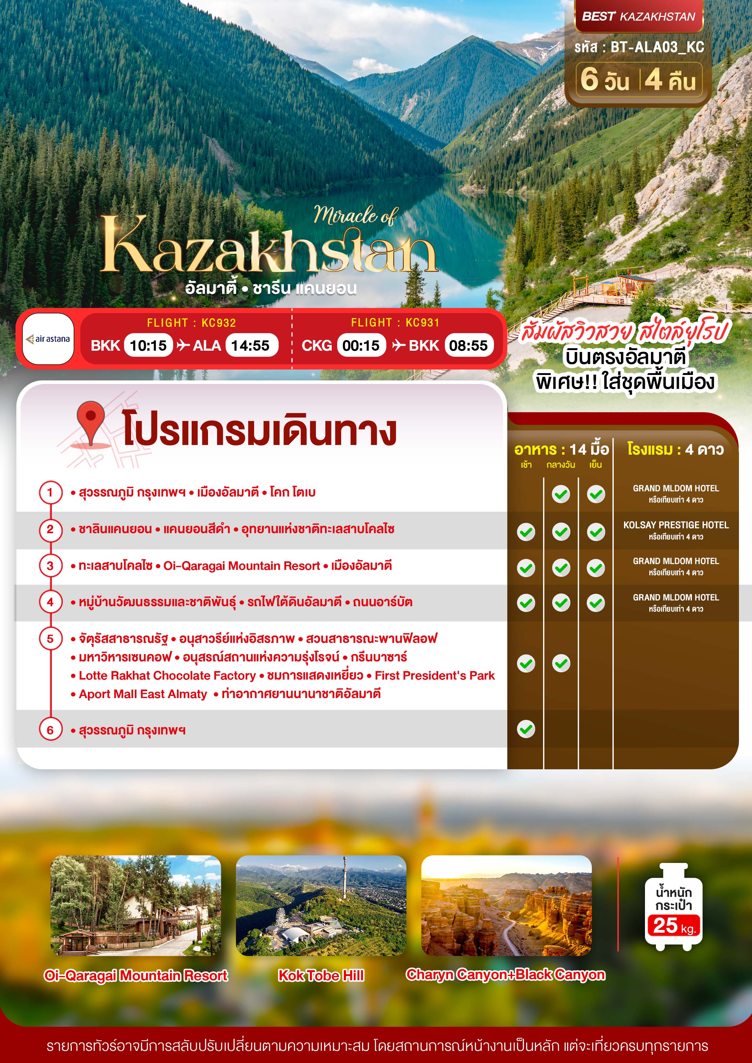 ทัวร์คาซัคสถาน KAZAKHSTAN อัลมาตี ชารีน แคนยอน (บินตรงอัลมาตี) Summer 6 วัน 4 คืน บินKC วันที่ 11-16 ส.ค. 69 ราคา 57,999 บาท