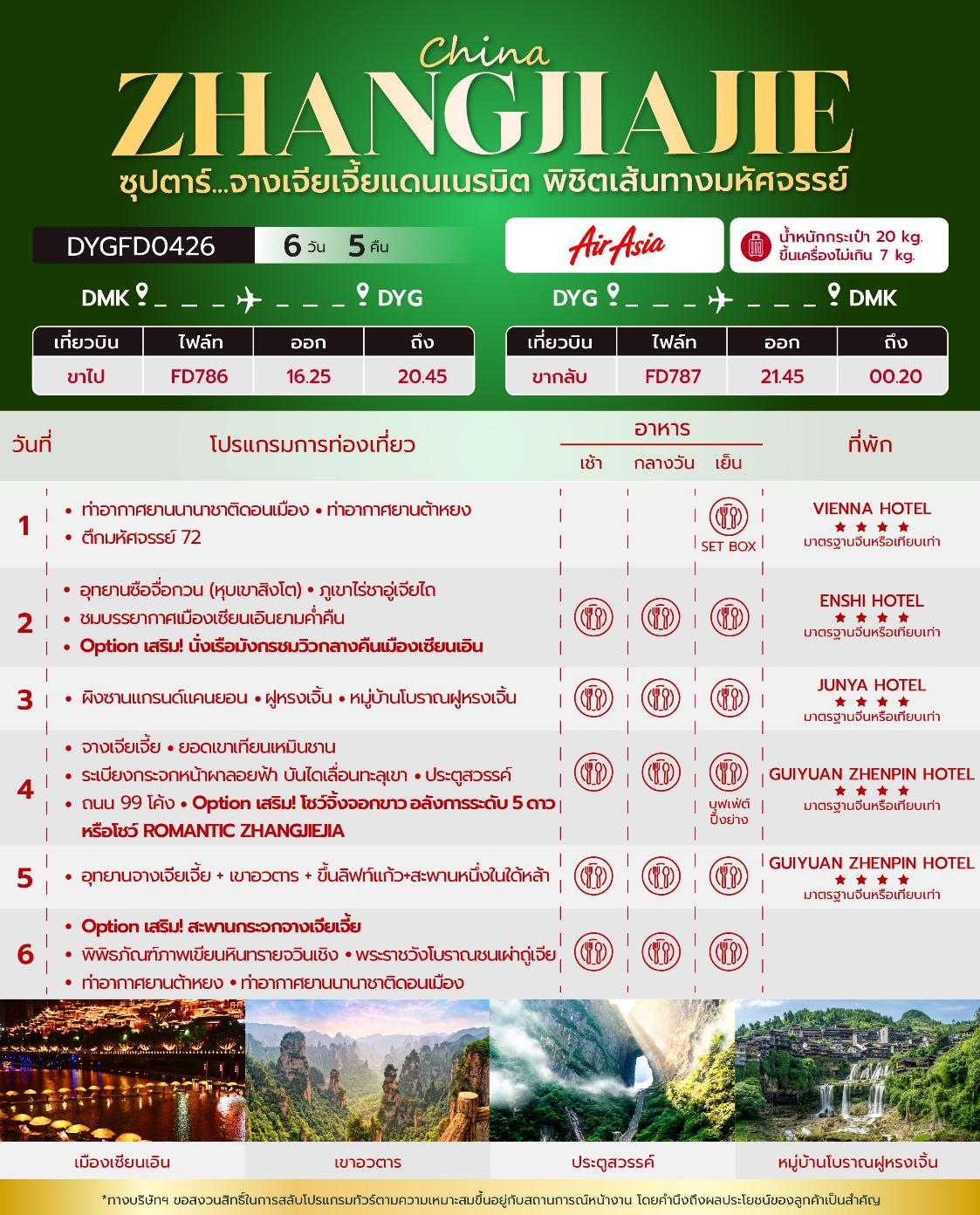 ทัวร์จีน จางเจียเจี้ย เอินซือ ฝูหรงเจิ้น No Shopping 6 วัน 5 คืน บินFD เดินทาง มี.ค.-ธ.ค.69 ราคาเริ่ม 20,888 บาท