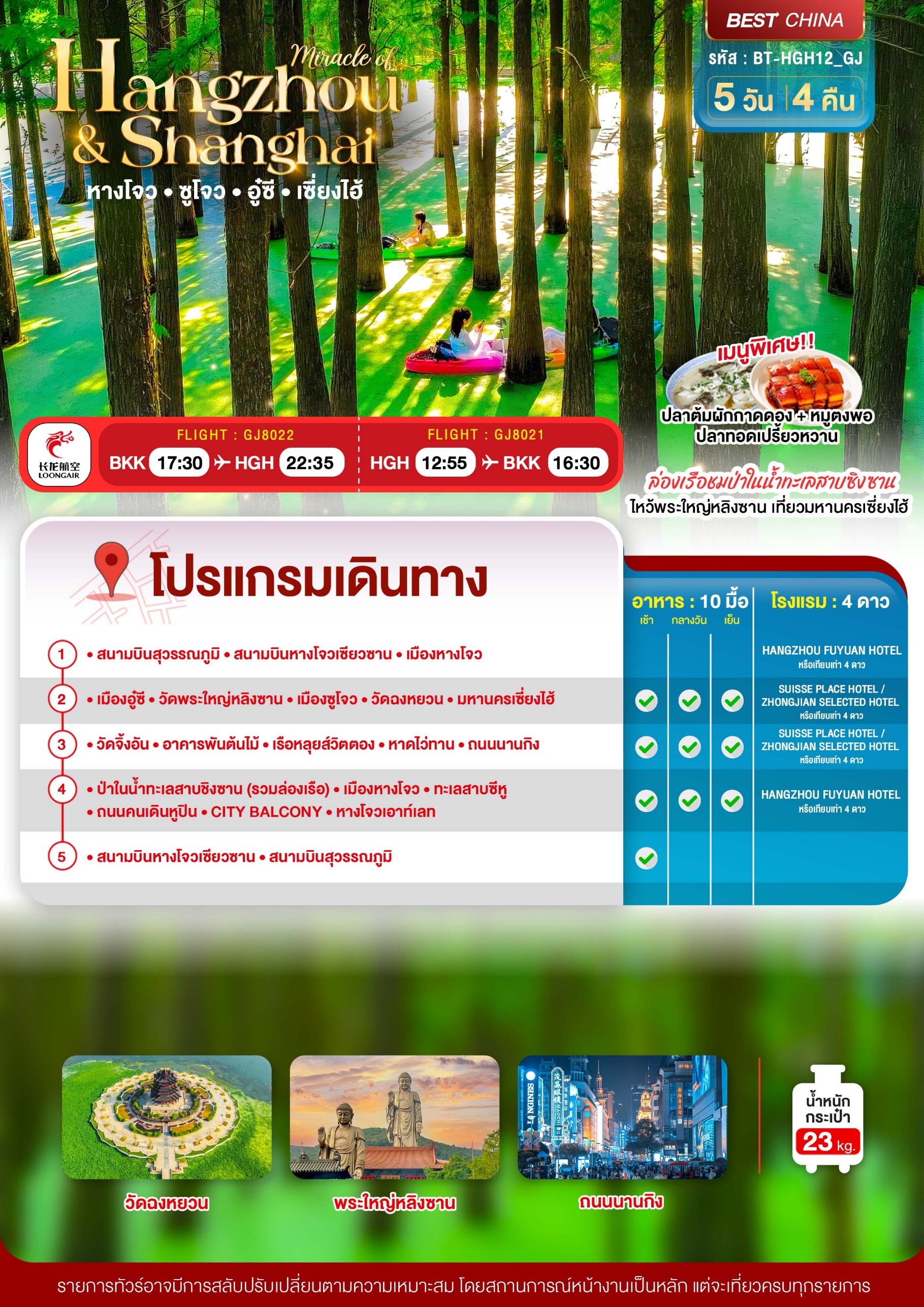 ทัวร์จีน หางโจว ซูโจว อู๋ซี เซี่ยงไฮ้ 5 วัน 4 คืน บินGJ เดินทาง พ.ค.-ต.ค. 69 ราคาเริ่ม 20,999 บาท