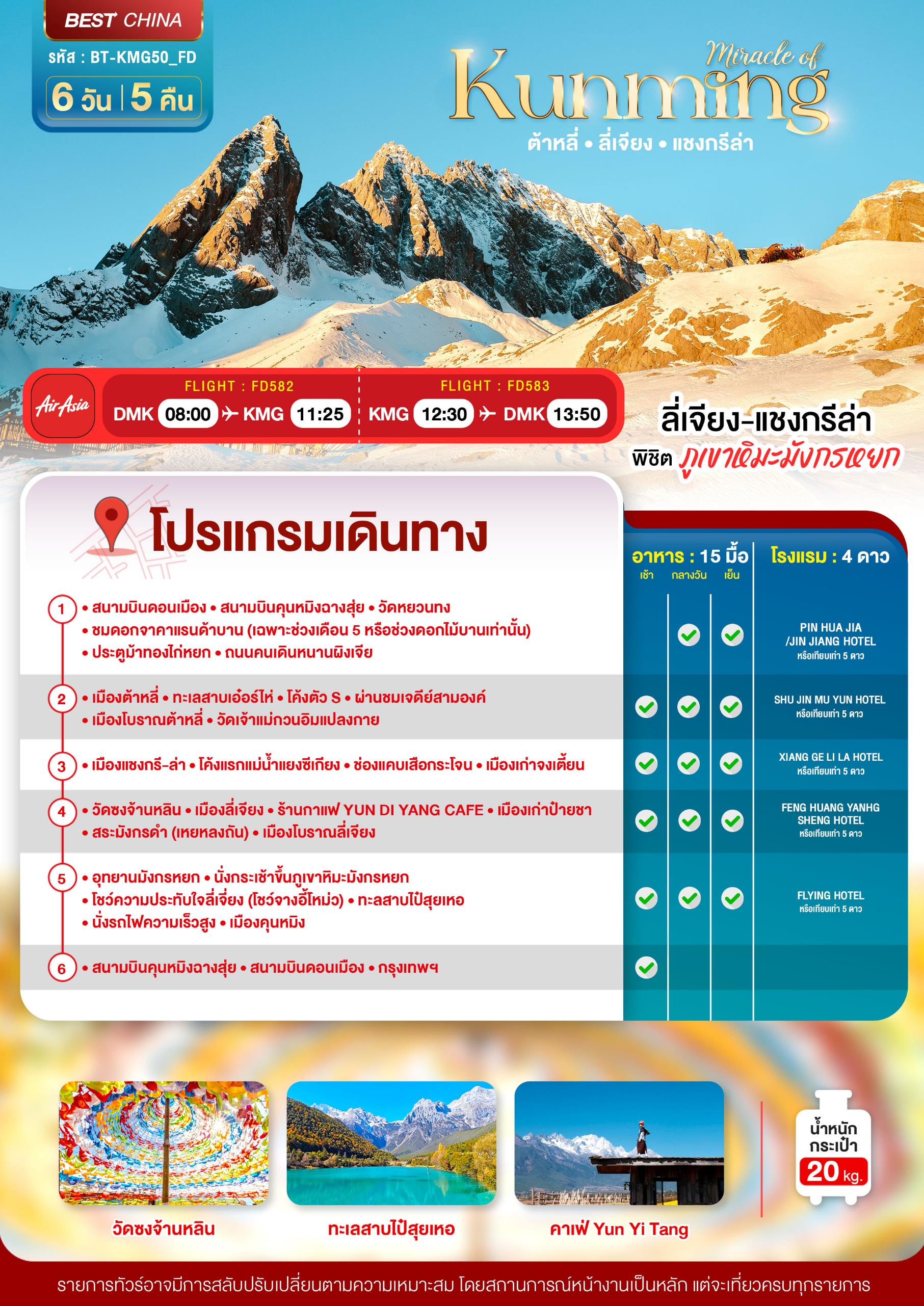 ทัวร์จีน คุนหมิง ต้าหลี่ ลี่เจียง แชงกรีล่า (นั่งรถไฟความเร็วสูง-ไม่ลงร้าน) 6 วัน 5 คืน บินFD เดินทาง เม.ย.-ต.ค. 69 ราคาเริ่ม 19,999 บาท