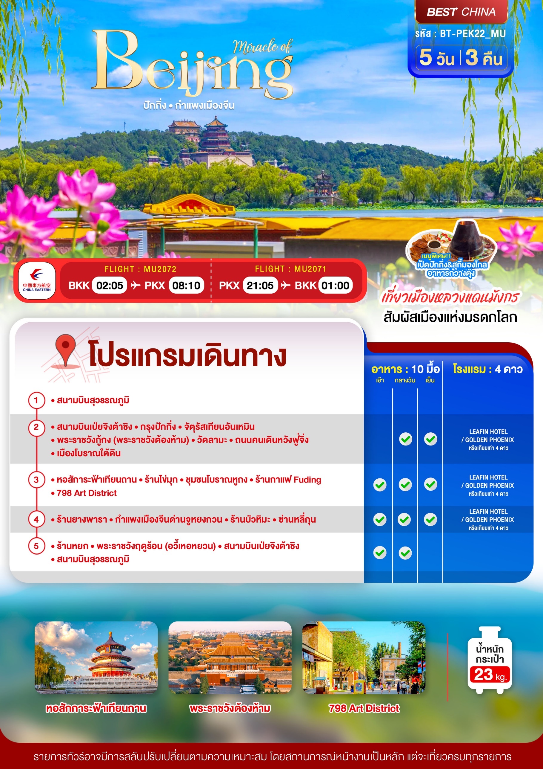 ทัวร์จีน ปักกิ่ง กำแพงเมืองจีน 5 วัน 3 คืน บินMU เดินทาง มิ.ย.-ต.ค. 69 ราคาเริ่ม 21,999 บาท