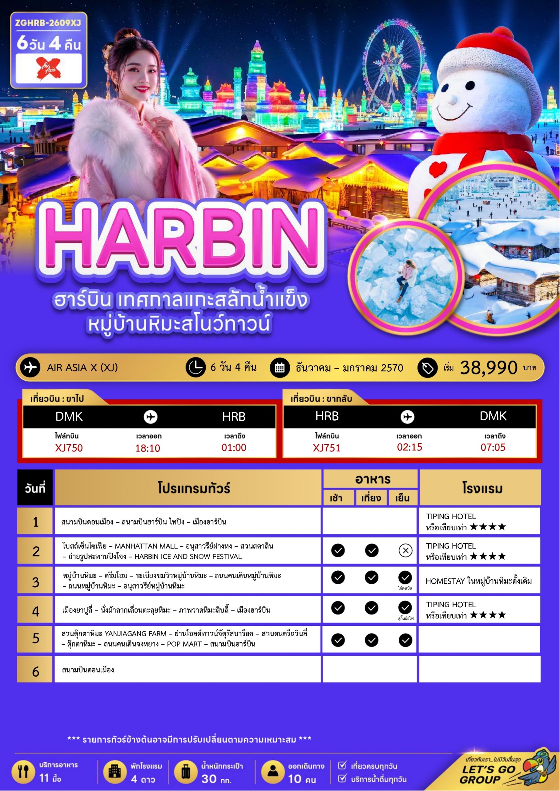 ทัวร์จีน บินตรงฮาร์บิน เทศกาลแกะสลักน้ำแข็ง 6 วัน 4 คืน บินXJ เดินทาง ธ.ค. 69-ม.ค. 70 ราคาเริ่มต้น 38,990 บาท