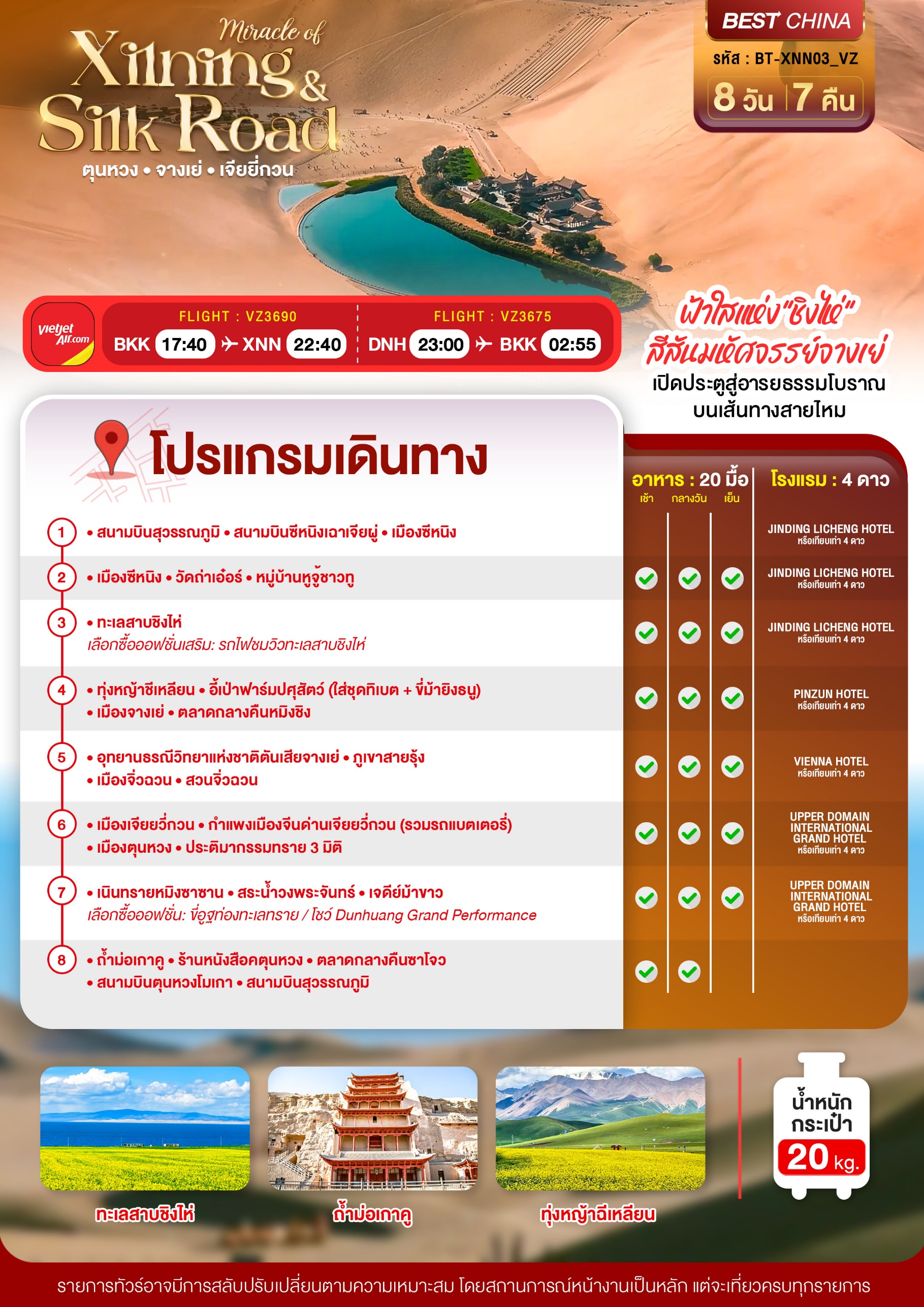 ทัวร์เส้นทางสายไหม ซีหนิง ชิงไห่ จางเย่ เจียยี่กวน ตุนหวง 8 วัน 7 คืน บินVZ เดินทาง มี.ค.-ต.ค. 69 ราคาเริ่ม 27,999 บาท