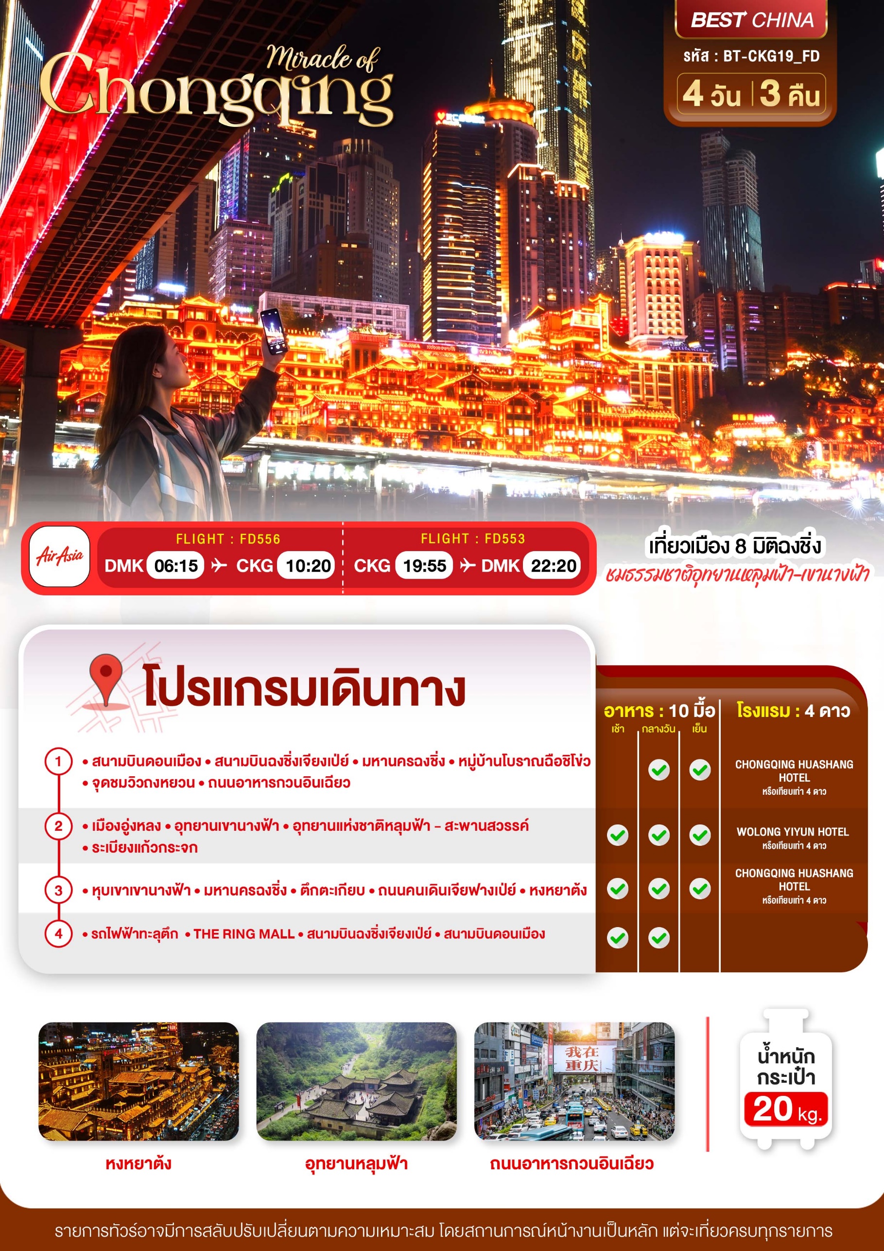 ทัวร์จีน ฉงชิ่ง หลุมฟ้า เขานางฟ้า 4 วัน 3 คืน บินFD เดินทาง พ.ค.-ต.ค. 69 ราคาเริ่ม 17,999 บาท
