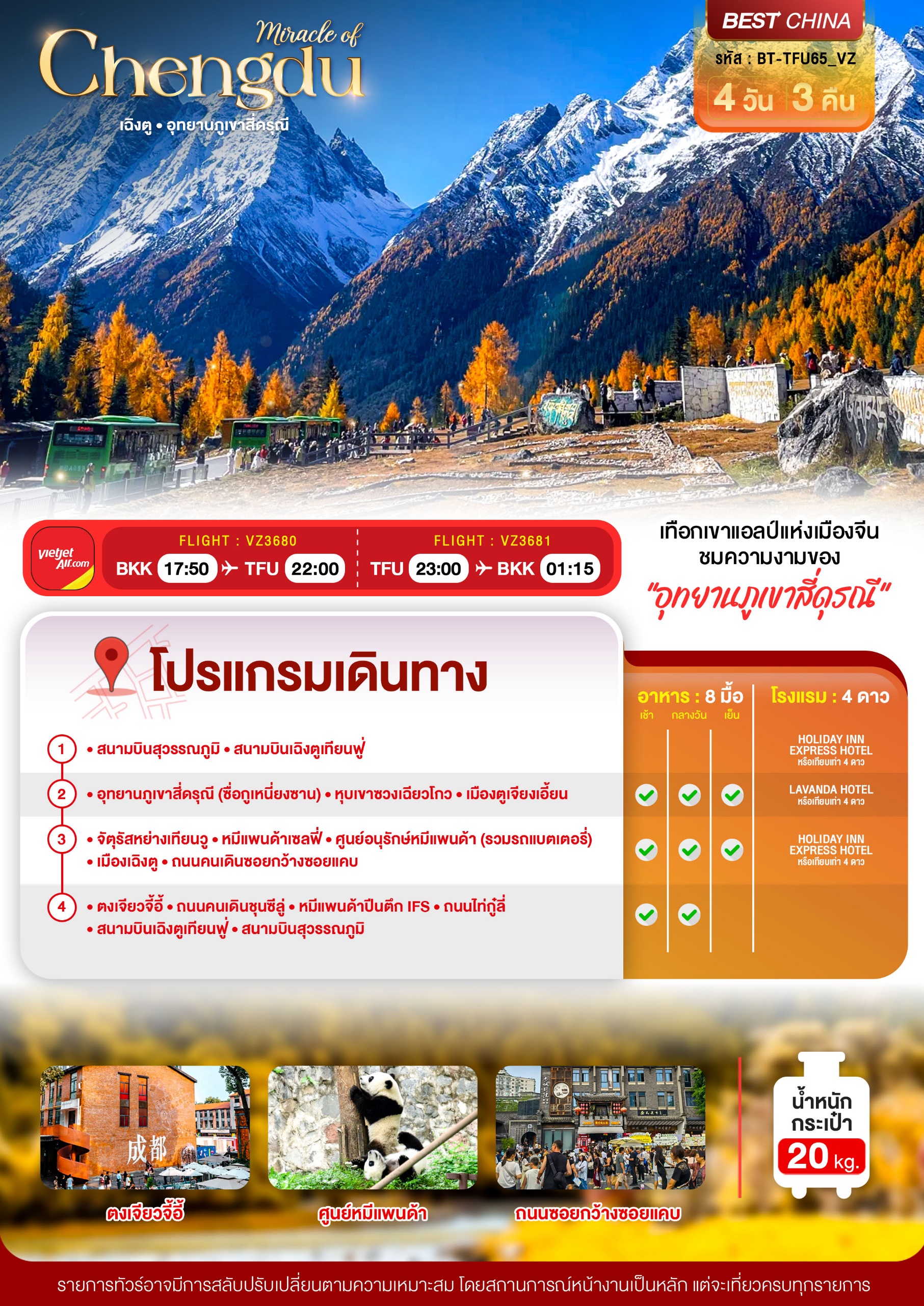 ทัวร์จีน เฉิงตู ภูเขาสี่ดรุณี ชมใบไม้เปลี่ยนสี 4 วัน 3 คืน บินVZ เดินทาง ต.ค. 69 ราคาเริ่ม 19,999 บาท