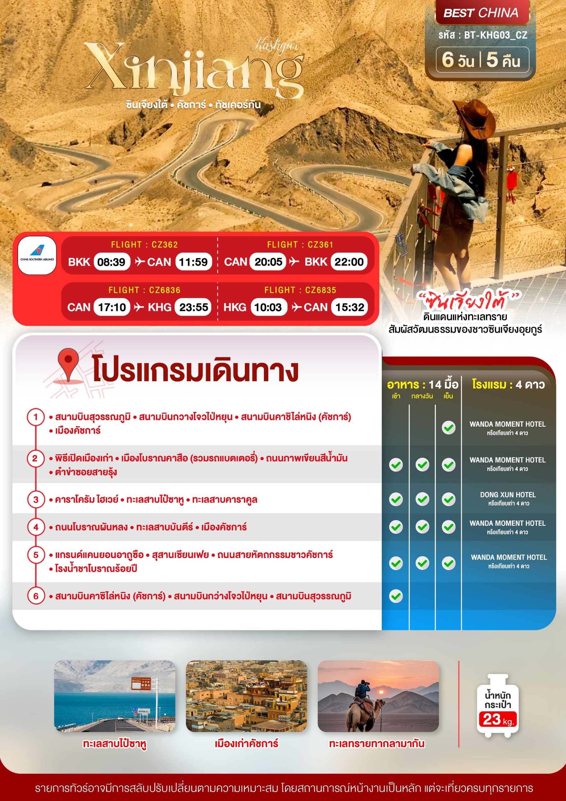 ทัวร์จีน ซินเจียงใต้ คัชการ์ ทัชเคอร์กัน (รวมภาษีน้ำมัน) 6 วัน 5 คืน บินCZ เดินทาง มิ.ย.-ก.ย. 69 ราคาเริ่ม 54,999 บาท