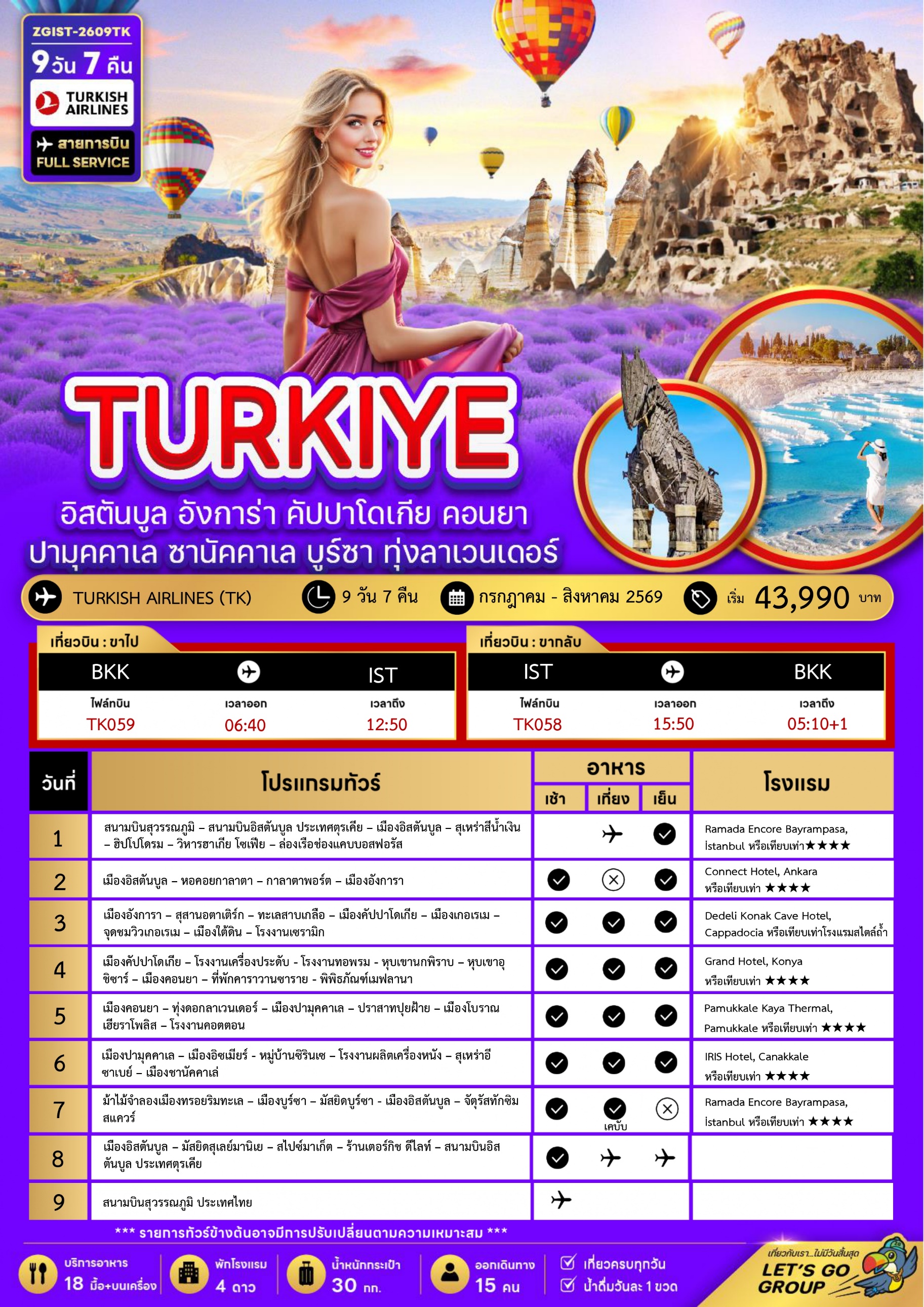 ทัวร์ตุรเคีย อิสตันบูล อังการ่า คัปปาโดเกีย คอนยา ปามุคคาเล (ทุ่งลาเวนเดอร์) 9 วัน 7 คืน บินTK เดินทาง ก.ค.-ส.ค. 69 ราคาเริ่ม 43,990 บาท