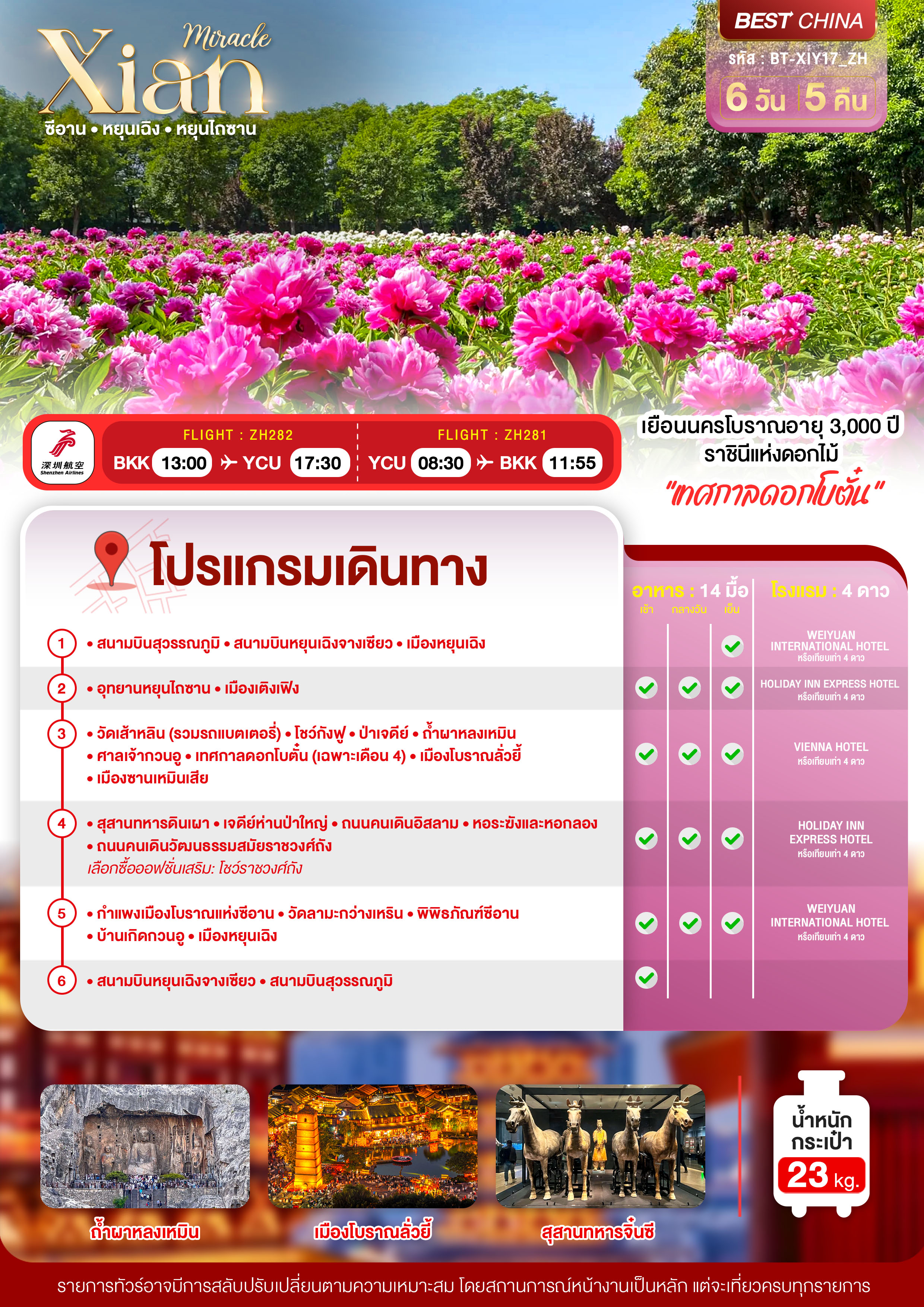 ทัวร์จีน ซีอาน หยุนเฉิง เติงเฟิง หยุนไถซาน (ไม่ลงร้าน) 6 วัน 5 คืน บินZH เดินทาง ม.ค.-มิ.ย. 69 สงกรานต์69 ราคาเริ่ม 22,999 บาท