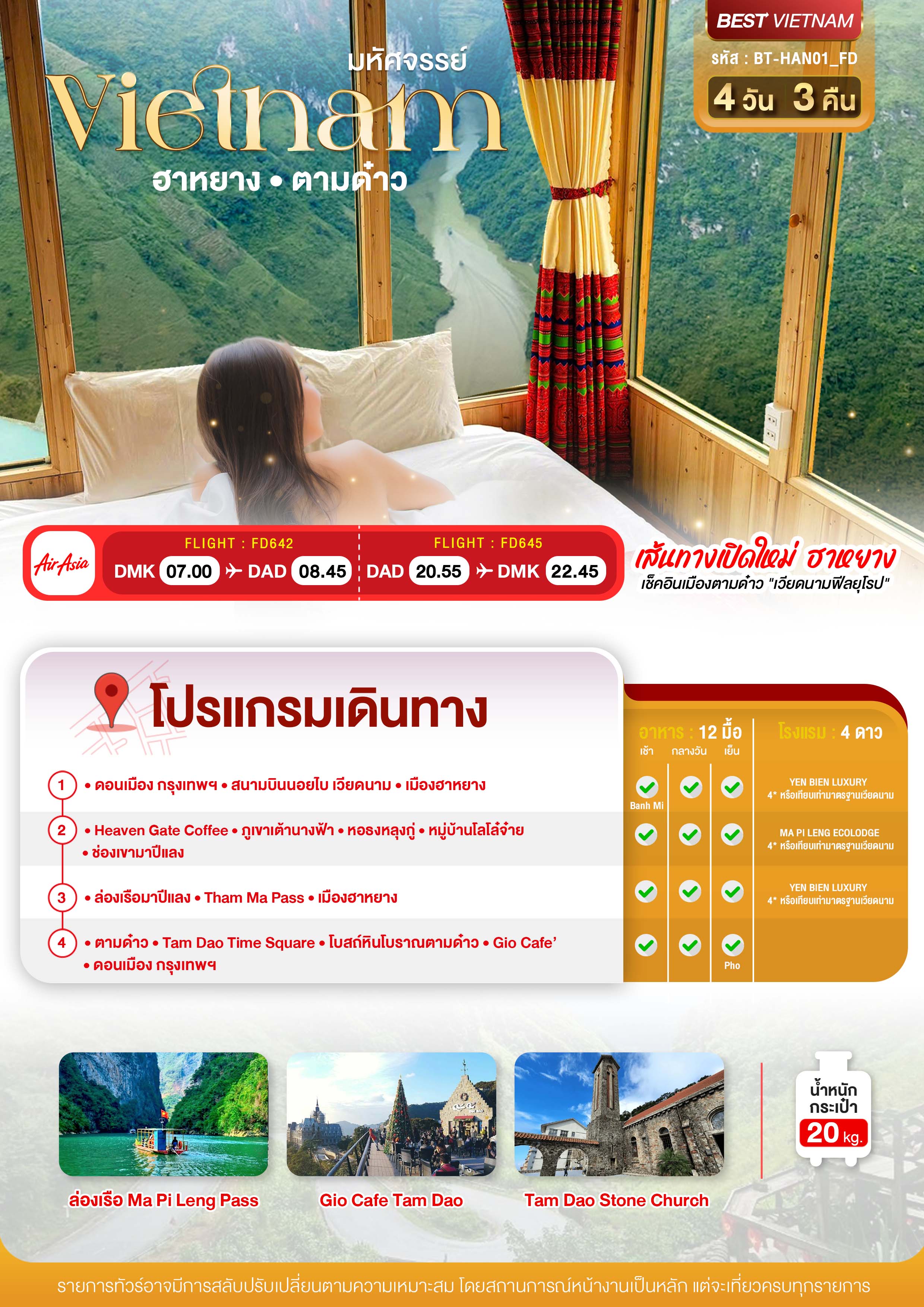 ทัวร์เวียดนามเหนือ ฮานอย ฮาหยาง ตามด๋าว 4 วัน 3 คืน บินFD เดินทาง ก.พ.-พ.ค. 69 ราคาเริ่ม 17,999 บาท