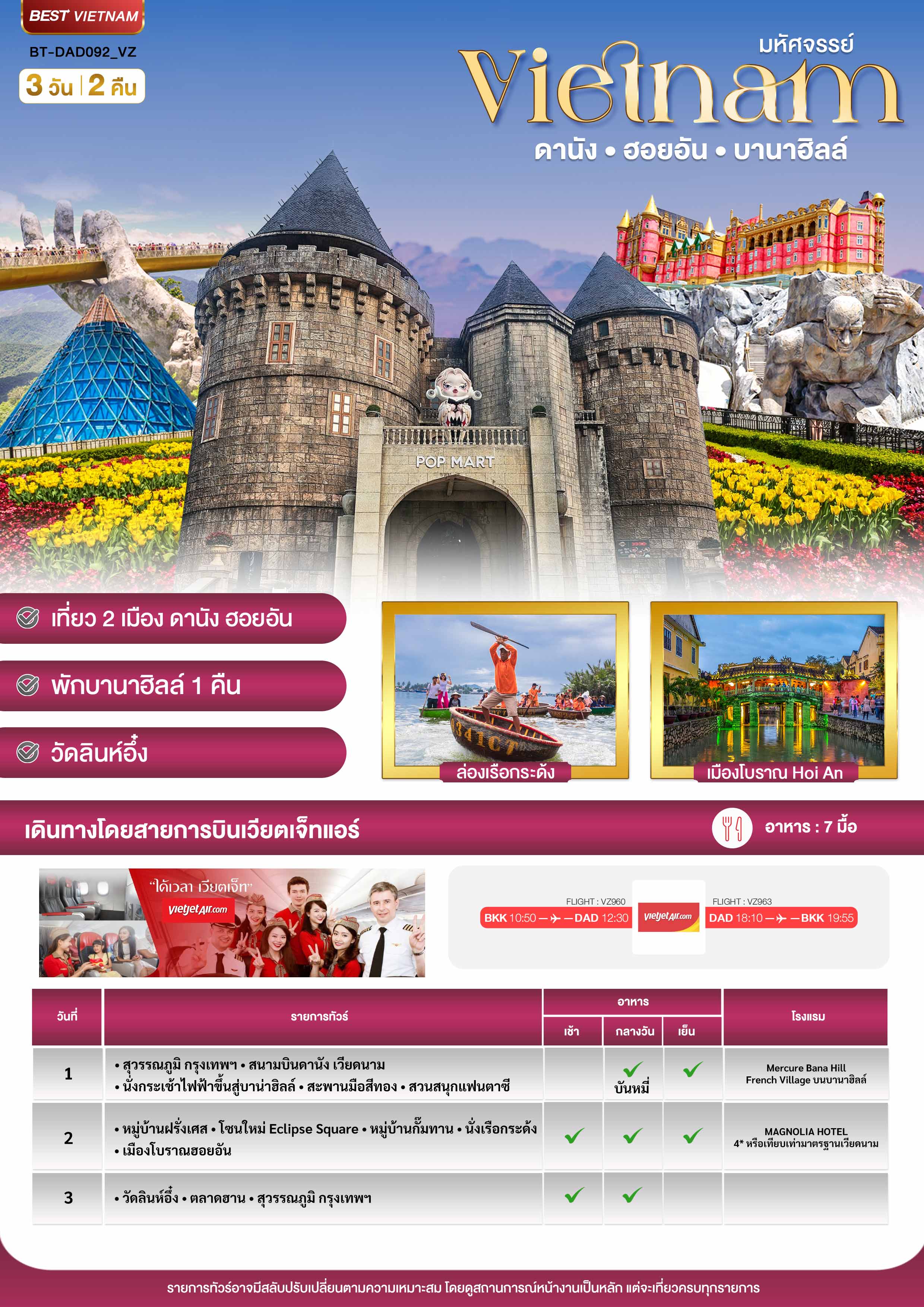ทัวร์เวียดนามกลาง ดานัง ฮอยอัน บาน่าฮิลล์ พักบานาฮิลล์ 3 วัน 2 คืน บินVZ เดินทาง เม.ย.-ต.ค. 69 ราคาเริ่ม 12,999 บาท