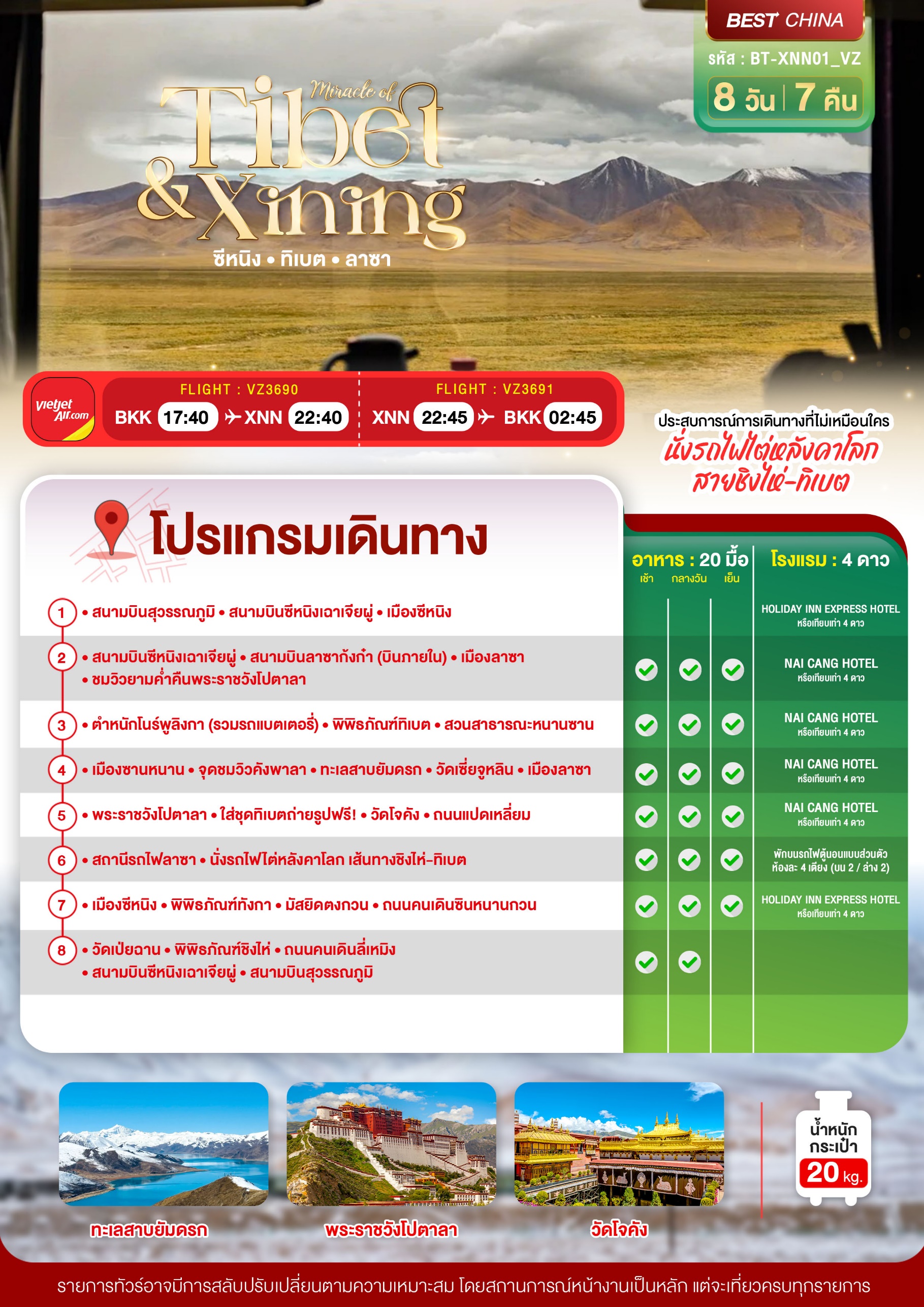 ทัวร์ทิเบต ซีหนิง ลาซา นั่งรถไฟไต่หลังคาโลก 8 วัน 7 คืน บินVZ เดินทาง เม.ย.-ต.ค. 69 ราคาเริ่ม 48,999 บาท
