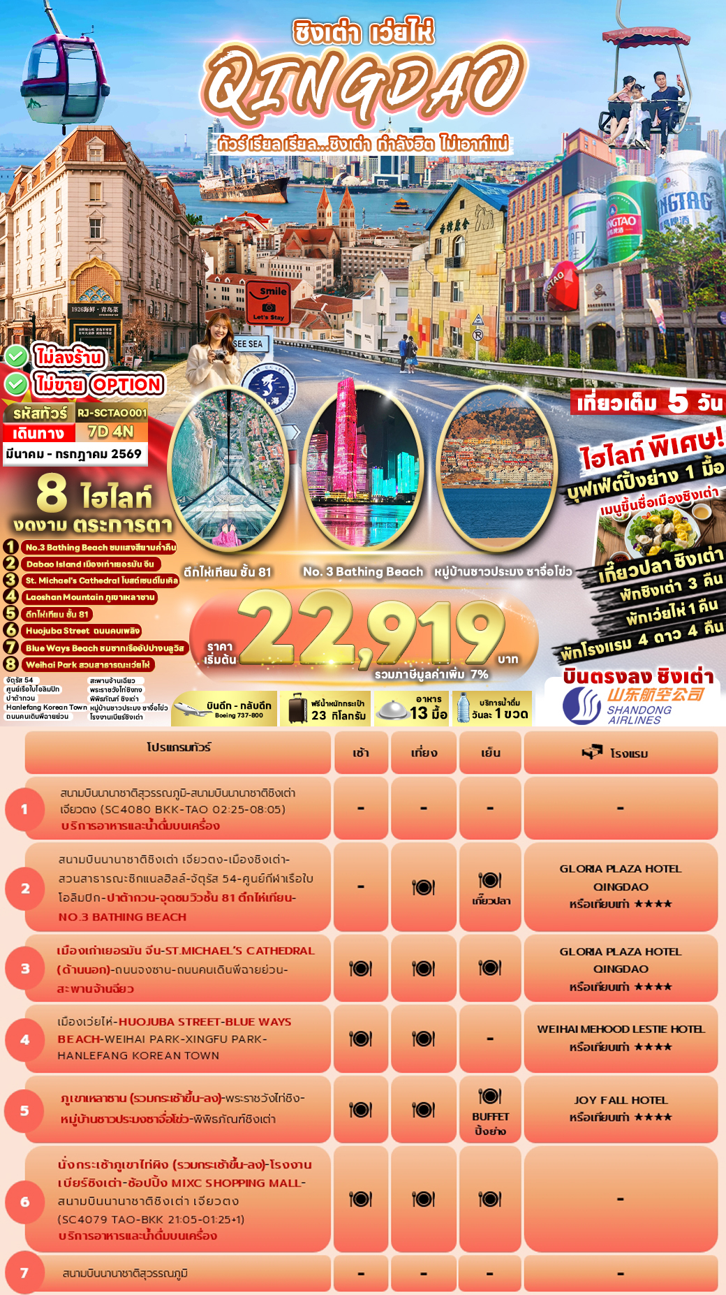 ทัวร์จีน ชิงเต่า เว่ยไห่ เมืองทะเลฟีลยุโรป 7D4N บินSC เดินทาง เดือน มี.ค. - มิ.ย. 69 ราคาเริ่มต้น 22,919.- บาท
