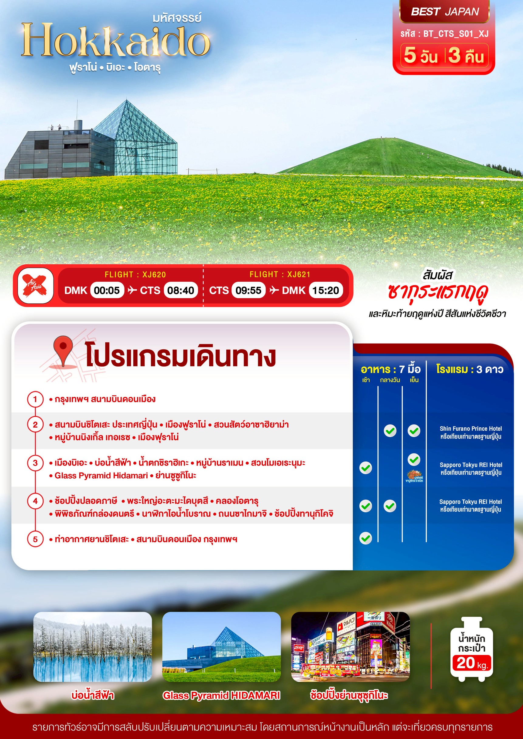 ทัวร์ญี่ปุ่น ฮอกไกโด HOKKAIDO ฟูราโน่ บิเอะ โอตารุ 5 วัน 3 คืน บินXJ เดินทาง เมษายน 69 ราคาเริ่ม 36,999 บาท
