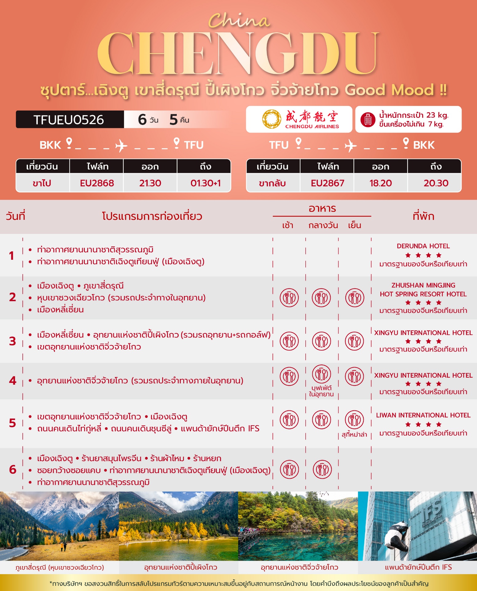 ซุปตาร์...เฉิงตู เขาสี่ดรุณี ปี้เผิงโกว จิ่วจ้ายโกว Good Mood !! 6 วัน 5 คืน (APR - OCT 26) บินดึก-กลับค่ำ